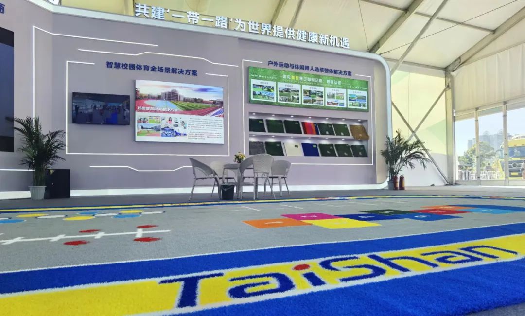 金沙js4399携户外运动与休闲人造草整体解决方案亮相会场。作为国内首家通过足联、曲联双认证的企业可根据不同用户的户外运动需求,生产多种类型的户外运动草坪。